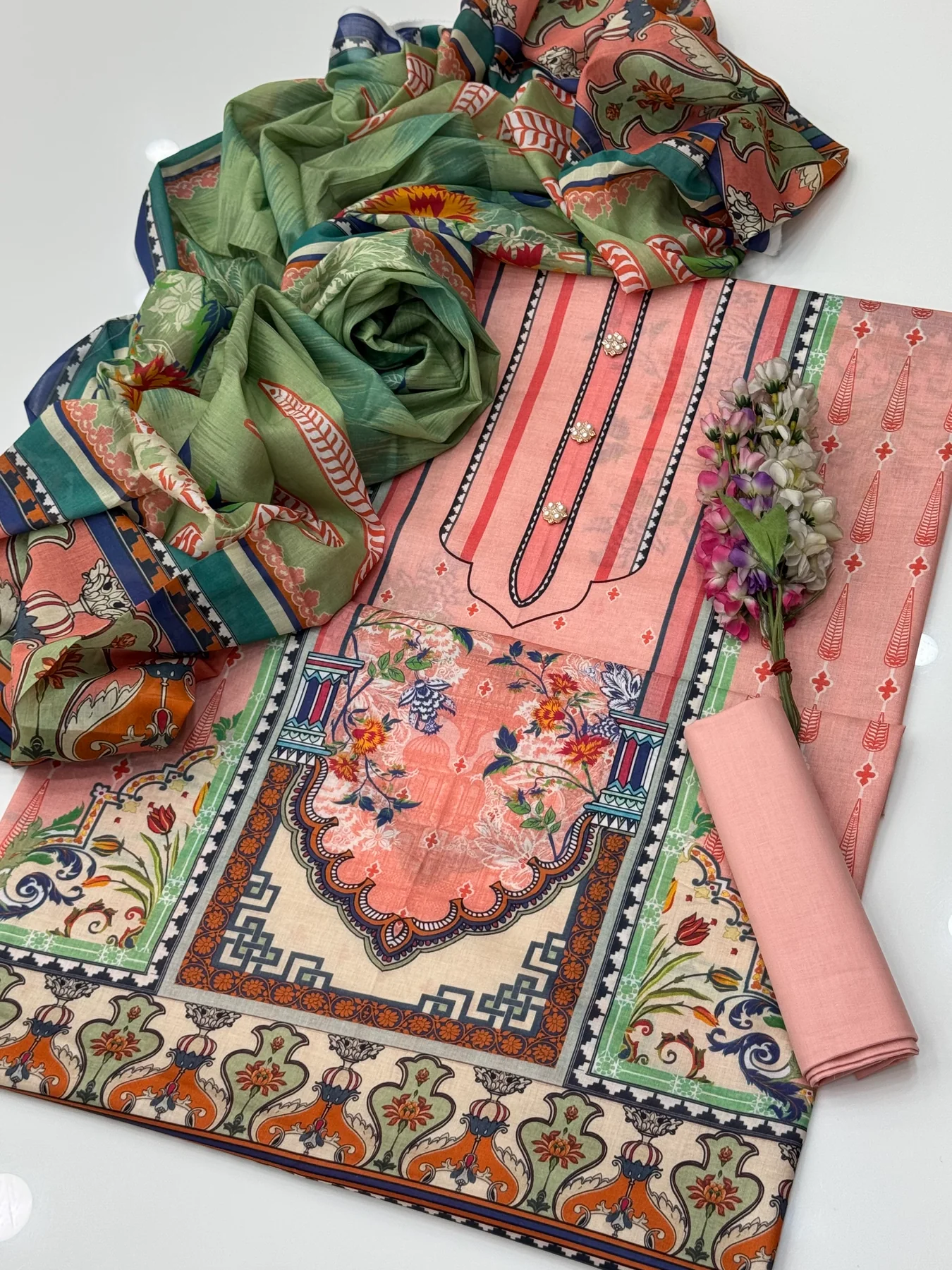 Mausummery Brand Digital Printed Pure Lawn Shirt & Trouser Along With Digital Printed Soft Lawn Duppata 3 Pc Dress đŸ‘—Measurement: 3 Metre Shirt , 2.5 Metre Trouser , 2.5 Metre Duppata