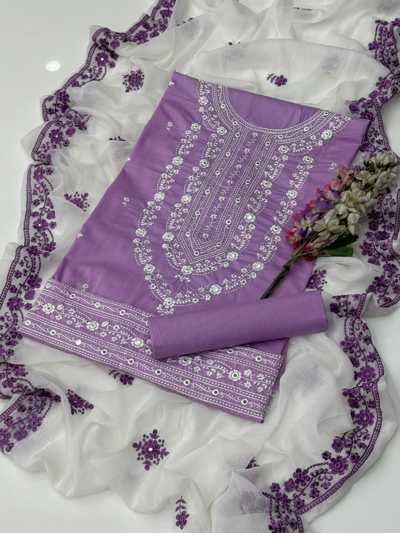 Handmade Style Pakka Tanka Thread ๐งต Embroidery With Paani Sheesha Work Pure Lawn Shirt And Trouser Along With Chiffon Embroidered Duppata 3 Pc Dress ๐